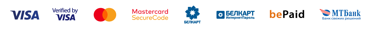 Мы принимаем платежи по следующим банковским картам: Visa, Visa Electron, MasterCard, Maestro, Белкарт.